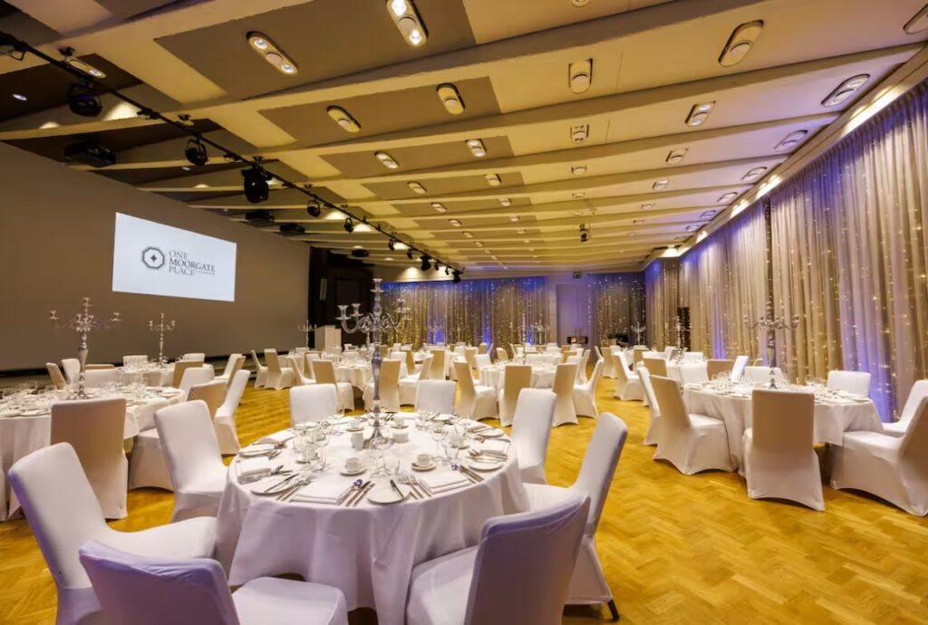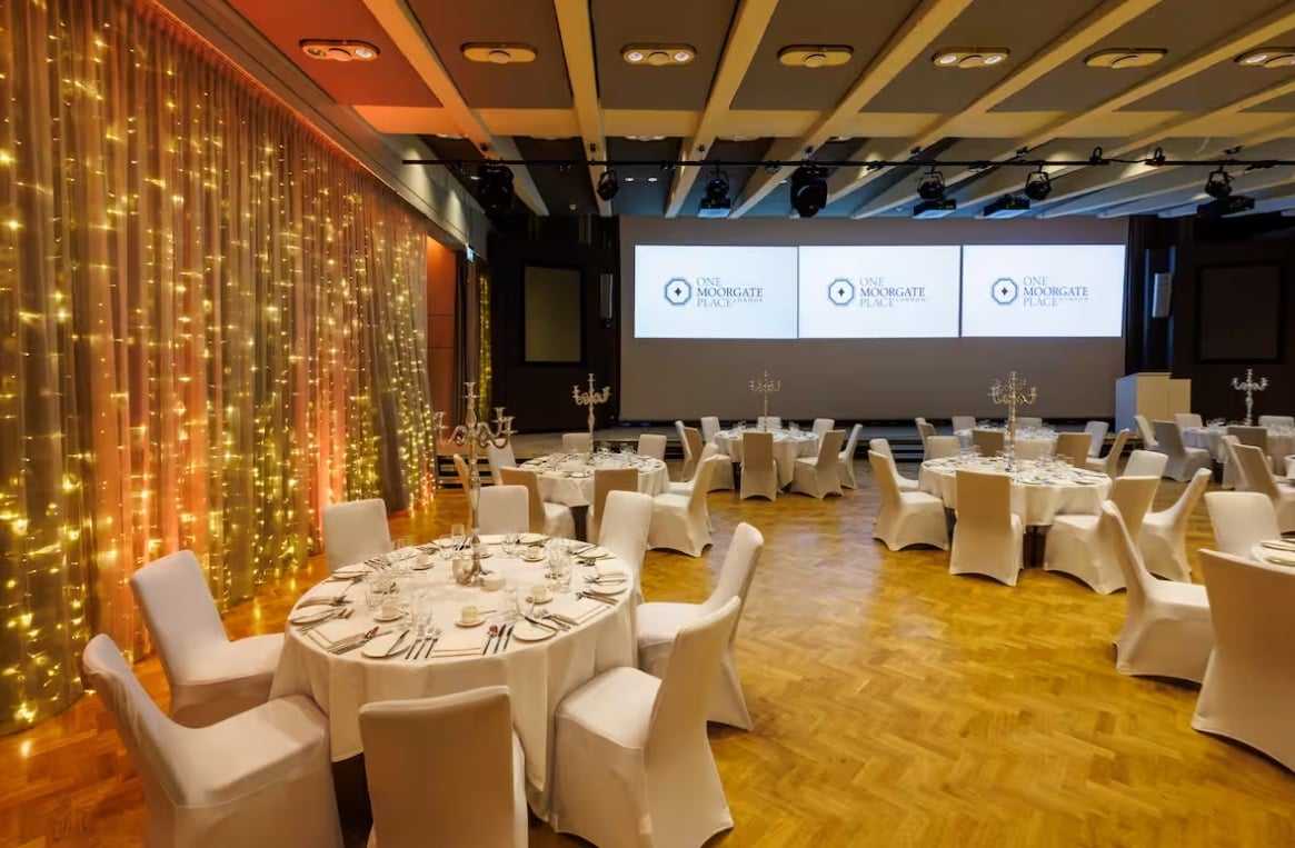 Located at the heart of One Moorgate Place, the Great Hall stands as the venue’s largest area, accommodating up to 400 standing or 270 in a theatre-style arrangement. This cutting-edge, state-of-the-art space is tailored for a diverse array of events including seated dinners and Christmas parties. Fully air-conditioned and equipped with a sophisticated audio-visual system throughout, this venue is certain to make a lasting impression. Adjacent to it is the magnificent Main Reception Room, seamlessly connecting to allow for a smooth transition from a drinks reception to a dining affair.