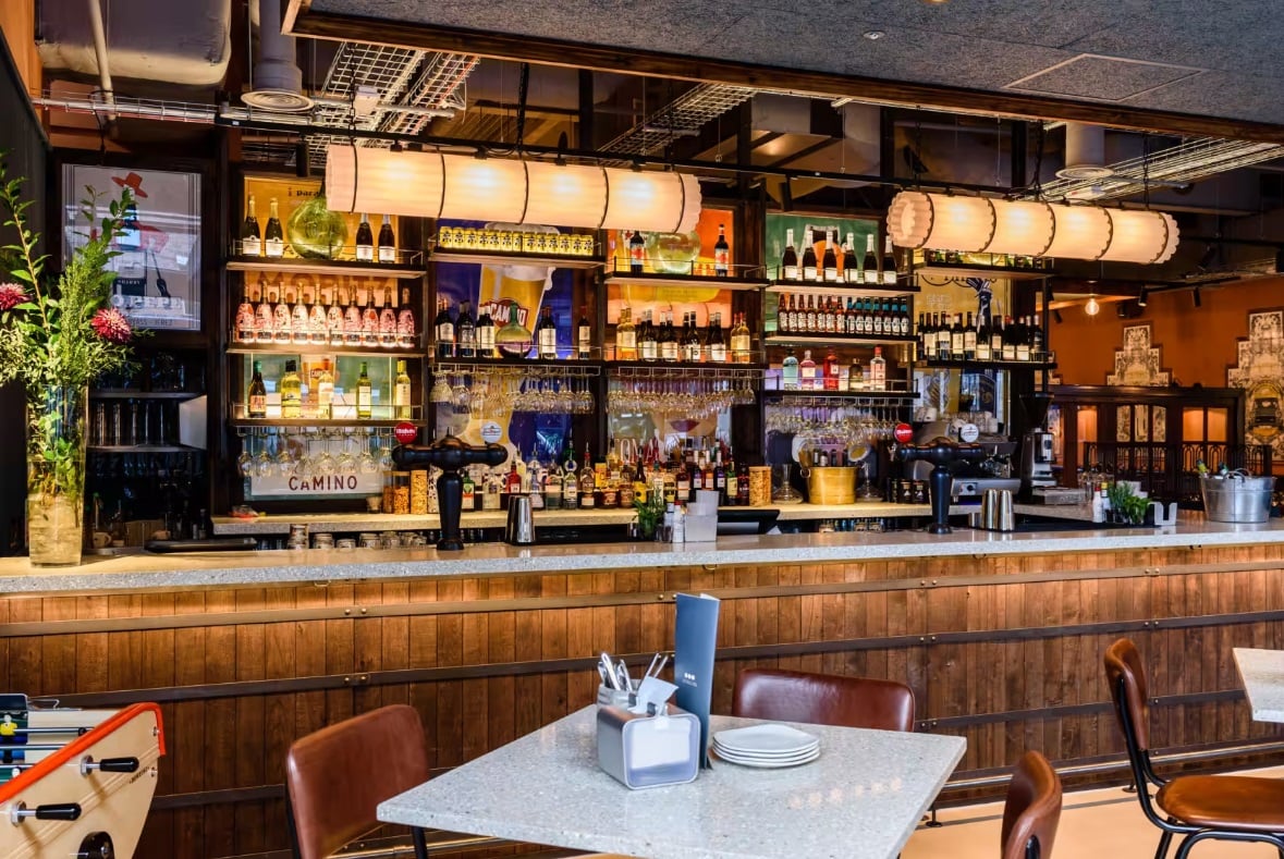 The restaurant offers guests a laid-back dining atmosphere with a rustic touch. Whether it’s a formal sit-down dinner or a more casual affair, they provide a relaxing rustic environment with excellent food, drinks, and entertainment. The flexible layout across three sections allows for easy customisation to accommodate your Christmas party needs.