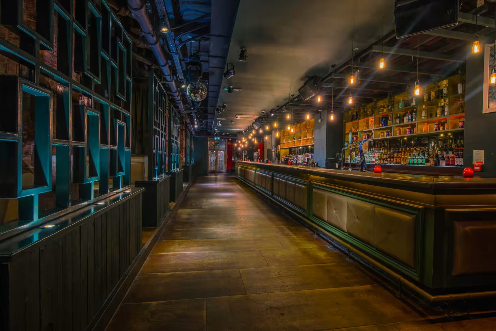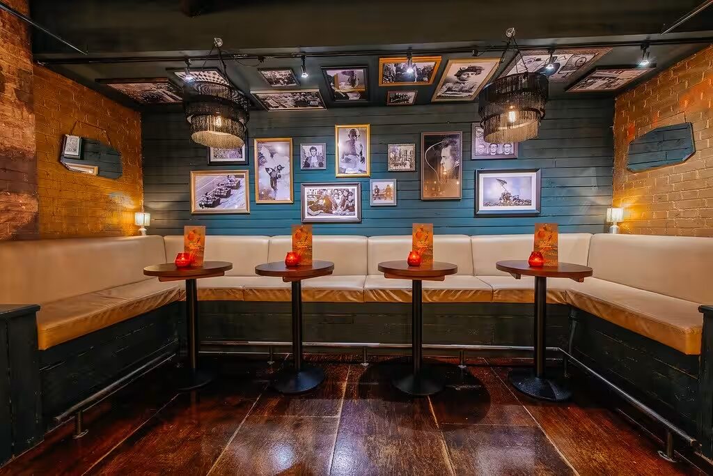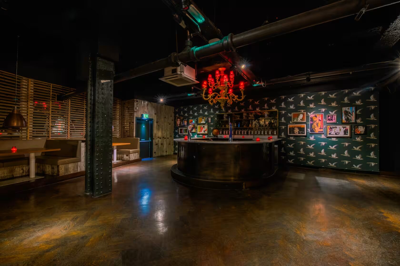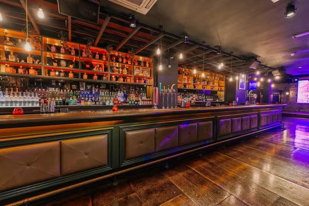 Nestled beneath the buzz of the main venue, The Basement Bar exudes a festive and historic charm.