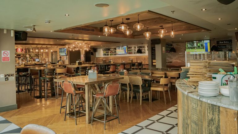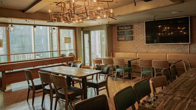 The main bar is the heart of the festivities, where you can raise a toast with a pint of the signature brew while enjoying the lively ambiance.