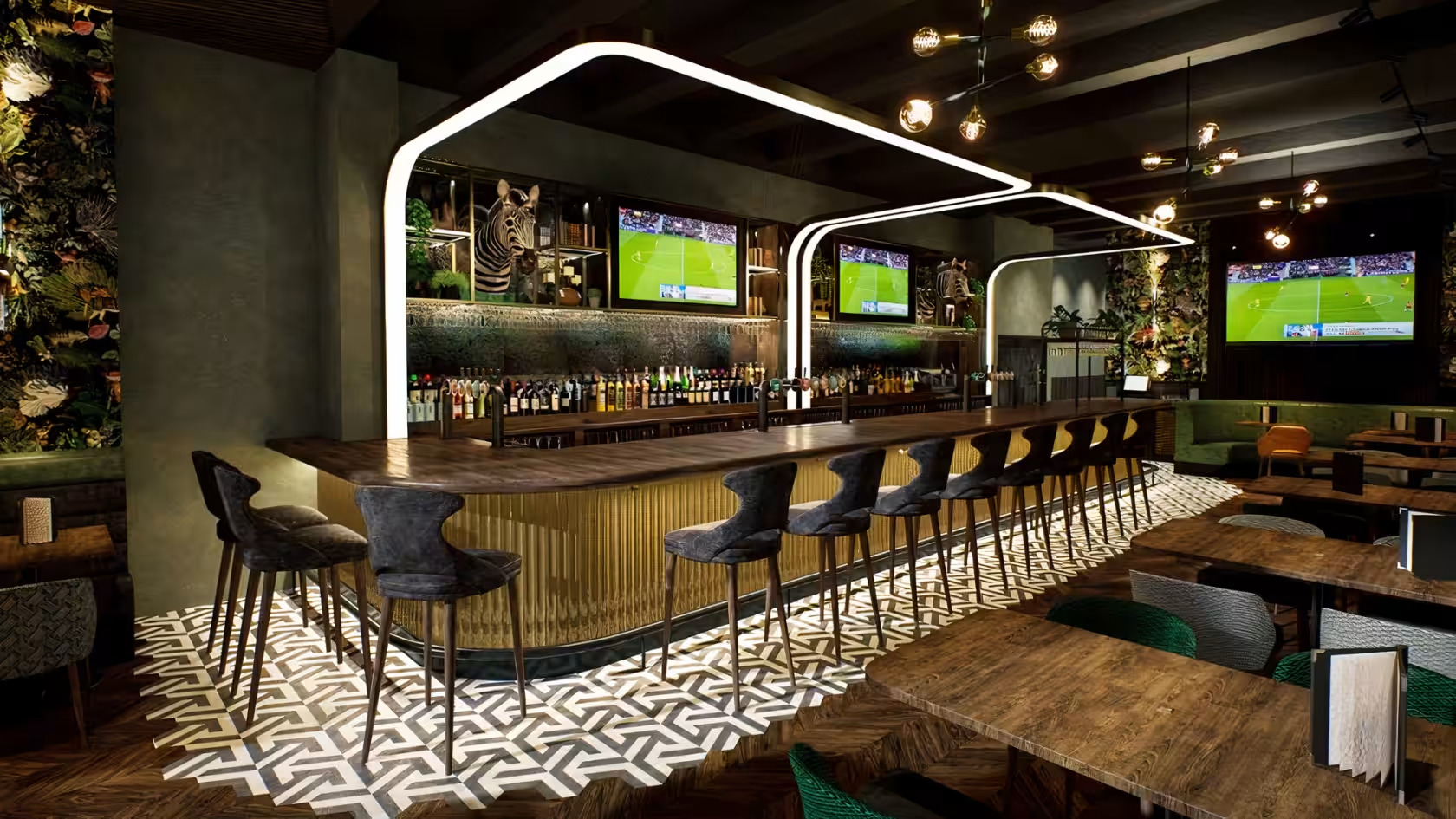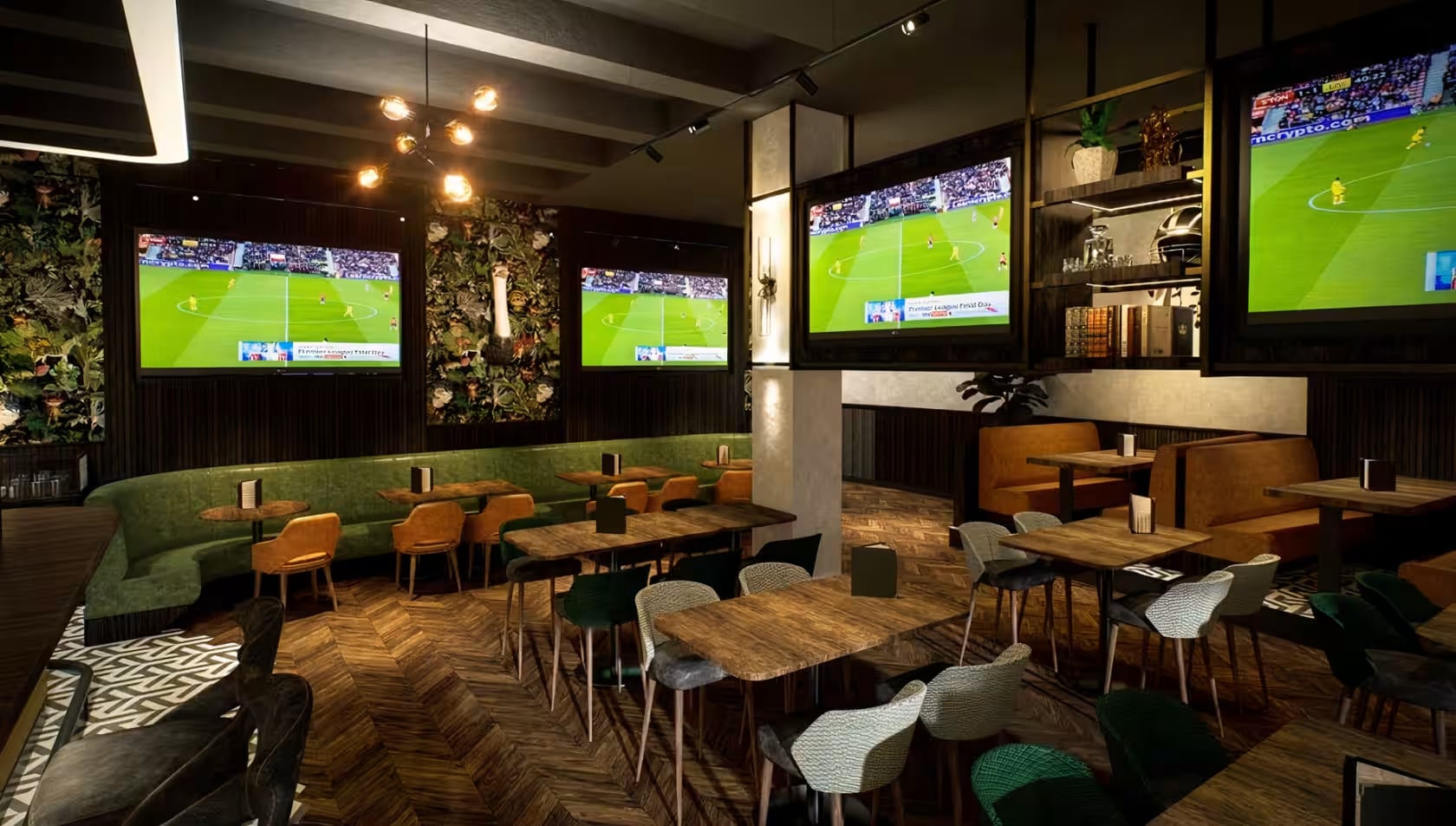 Imagine expansive UHD screens, a state-of-the-art sound system, and a sun-soaked terrace. Indulge in a premium food selection accompanied by an impressive lineup of international beers, delightful cocktails, and wines.