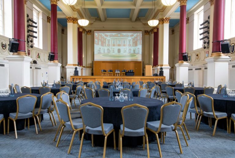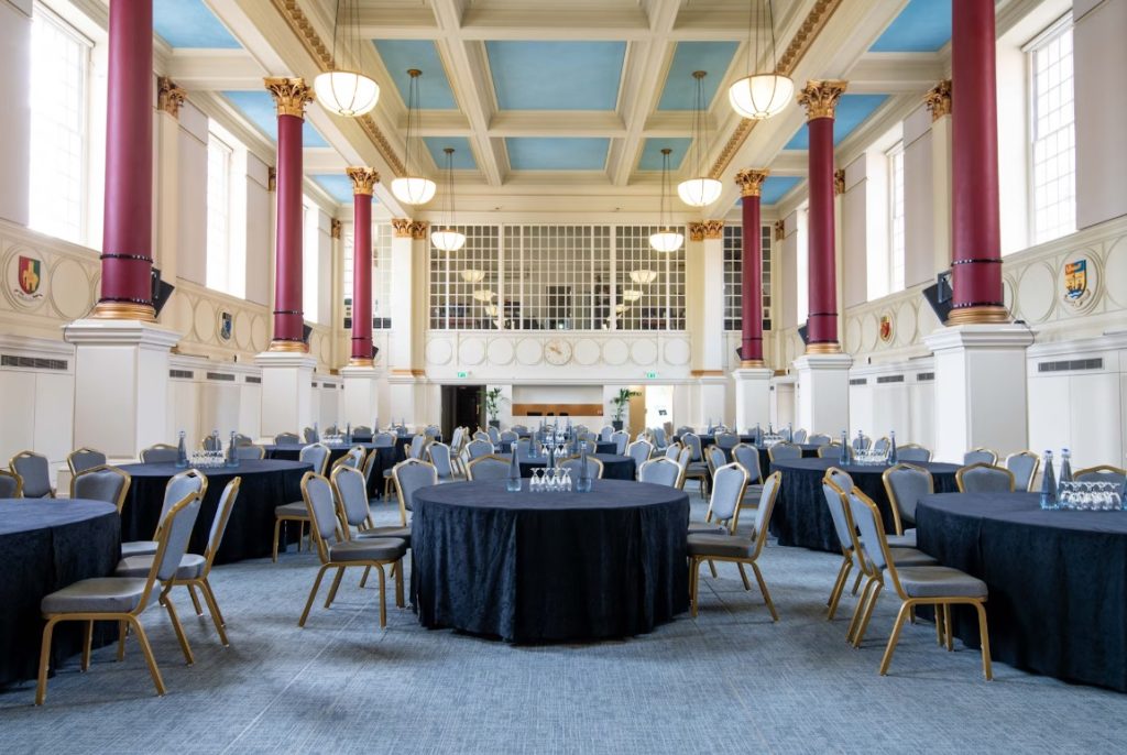 The Great Hall, an impressive and captivating area, stands at a remarkable height of 28 feet and spans over 115 feet in length. Positioned centrally on the first floor of BMA House, it provides a picturesque view of the main Courtyard from its welcoming balcony.