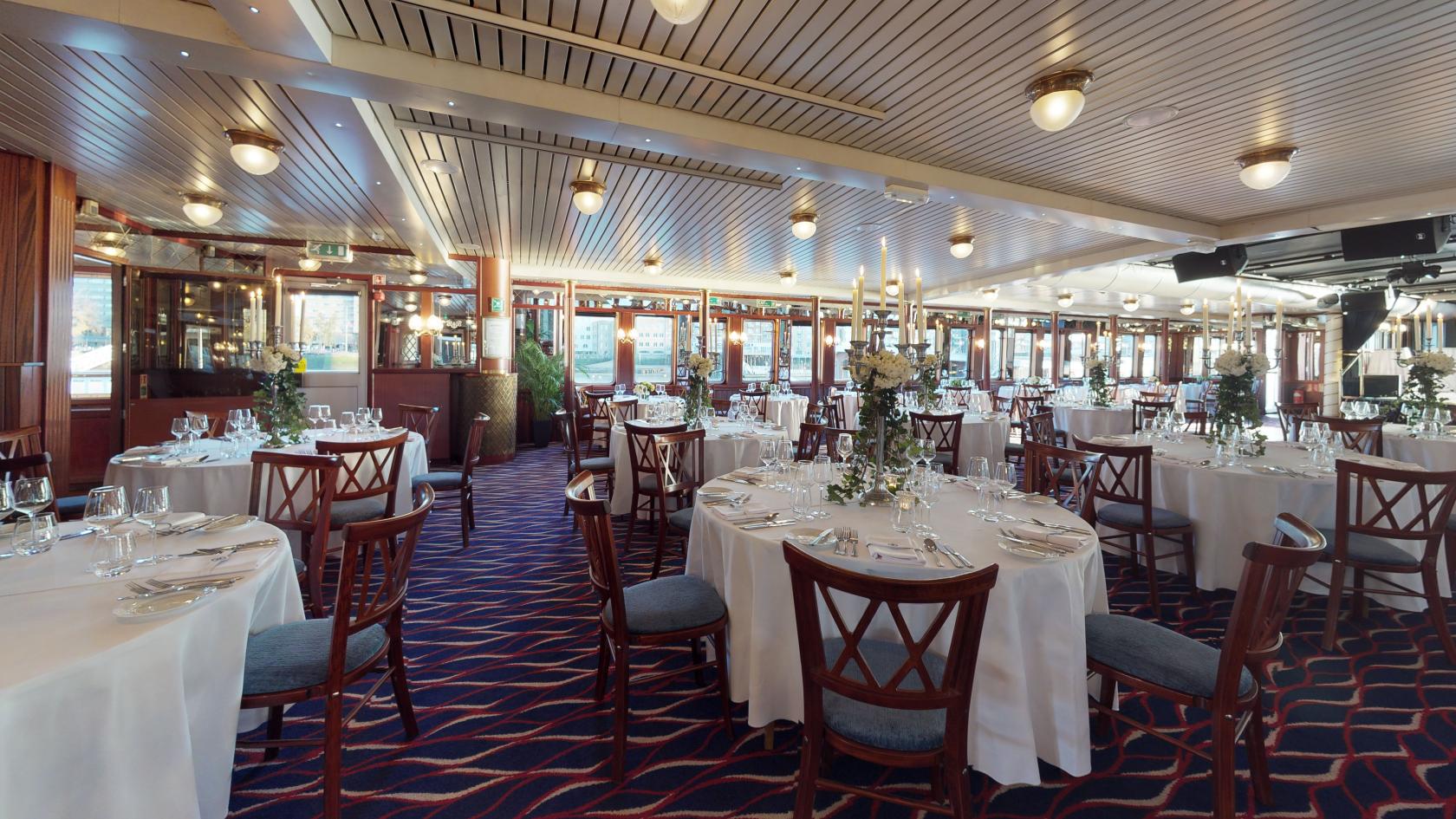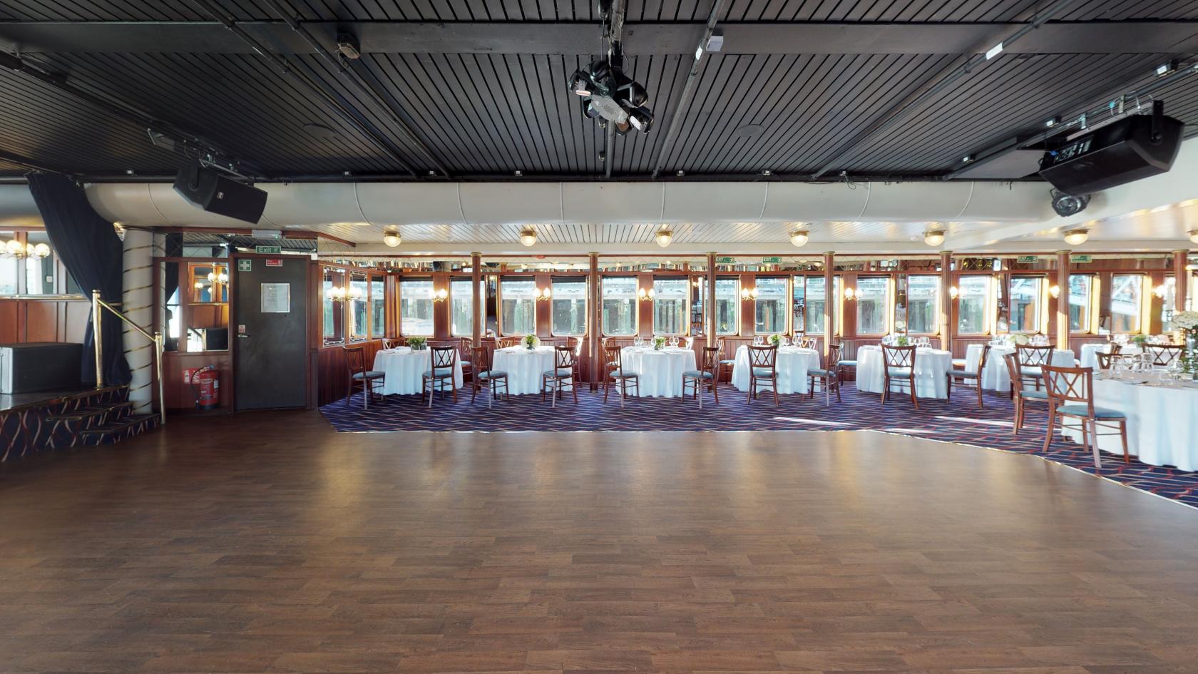 The Dixie Queen, a spacious and adaptable event venue, exudes the ambiance of a ship rather than a mere large boat. Its flexible layout caters to a diverse range of events. Throughout the winter months, the centrally heated Dixie Queen ensures a warm and inviting atmosphere.