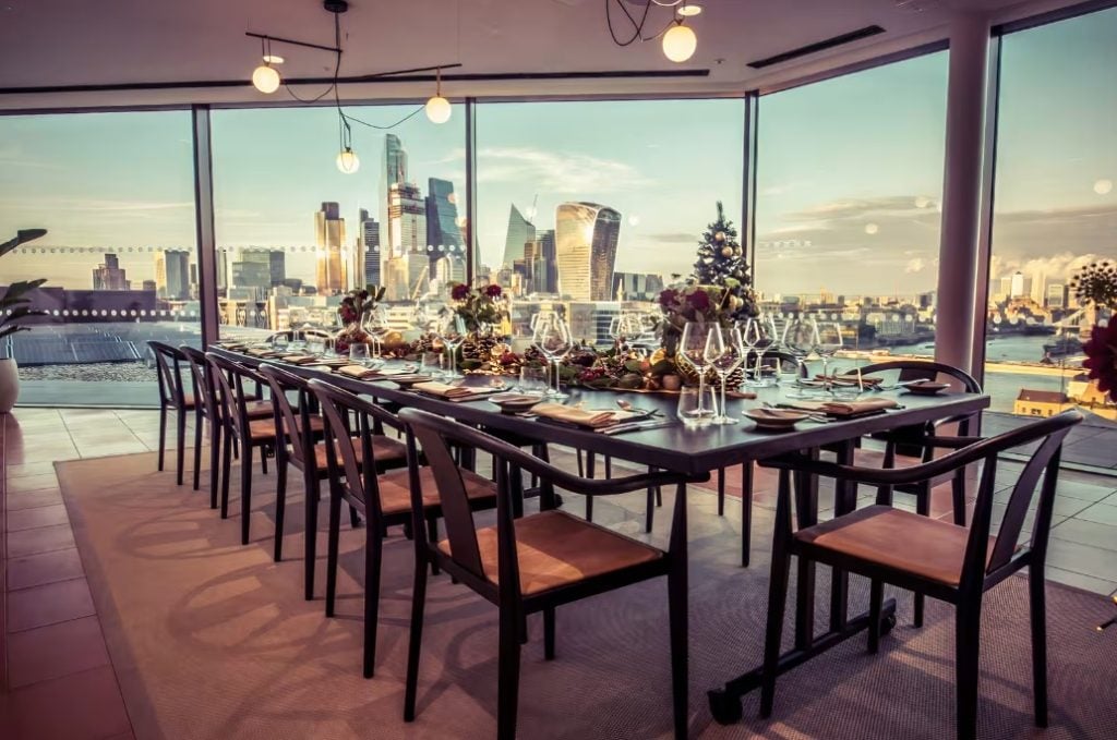 Adjacent to The Circle, this secluded private dining room presents an intimate setting for dinner or drinks receptions, each granting access to a terrace boasting impressive views. Against the backdrop of the London skyline, guests are guaranteed to be captivated in these exclusive settings. Ideal for private dinners, client gatherings, standing receptions accommodating up to 30 people, or corporate dinners hosting up to 20 guests.