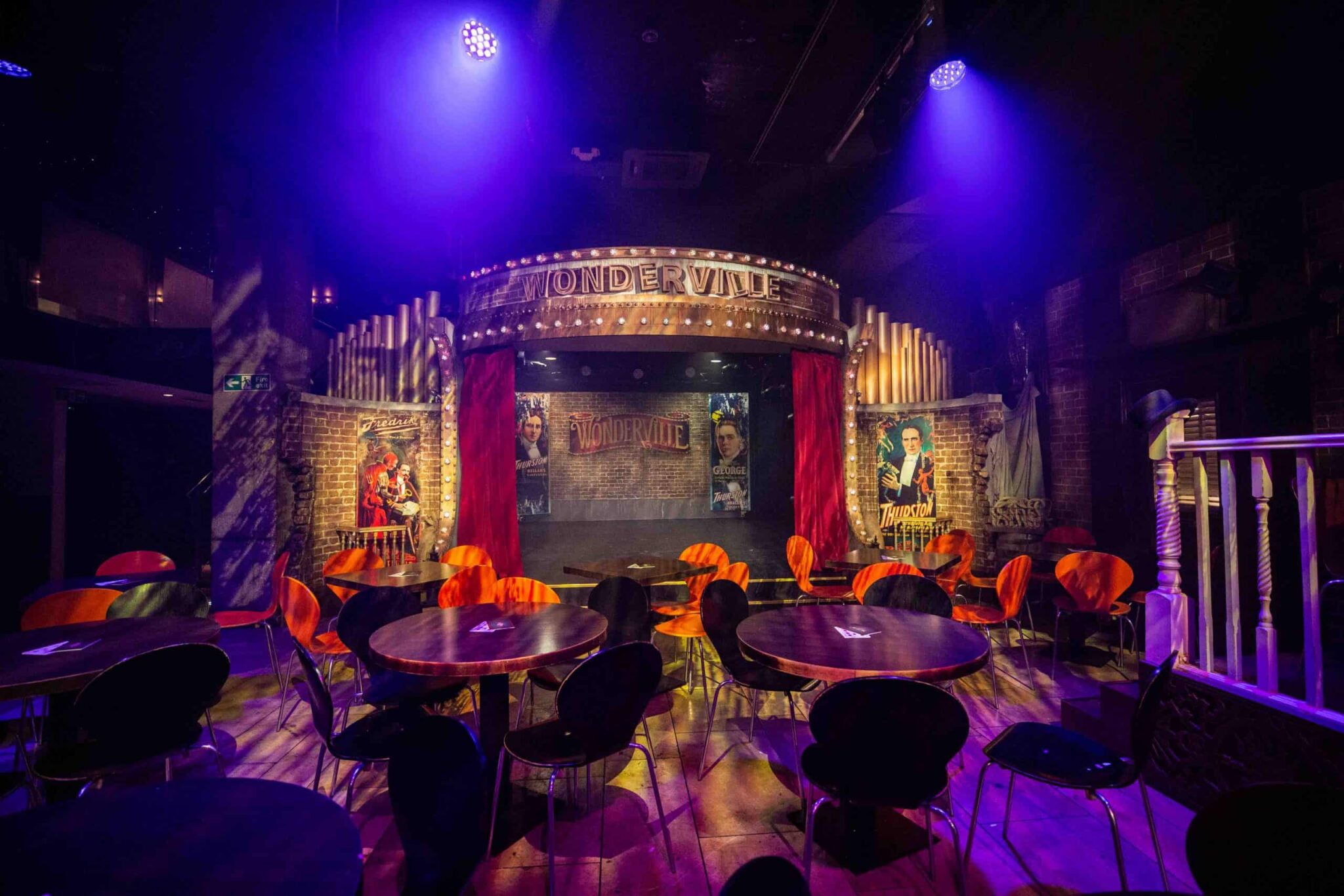Roll Up, Roll Up…. and join us for a fantastic night of mystery, magic and spell binding vaudeville entertainment. The doors are open at The Wonderville, an awesome new intimate destination in the heart of the West End. You will enter into an evening of breath-taking entertainment whilst enjoying the ambience of this hidden secret treasure. This new fully themed venue is split over 2 floors and has a fantastic central and side stage so be entertained where ever you look.
