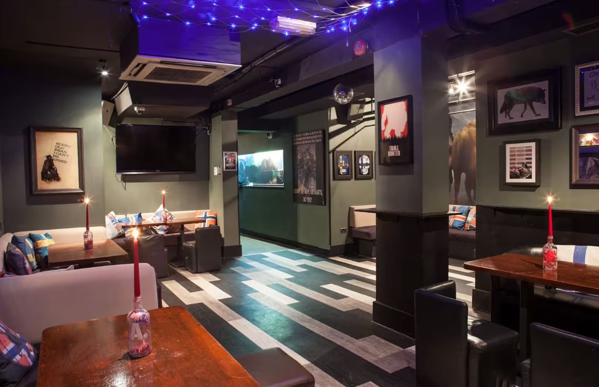 Hear, mighty warriors! Step into Nordic Bar, a Viking haven located just moments away from London’s renowned Oxford Street. Unleash your inner conqueror amidst the vibrant Viking ambiance, where towering screens transport you to the majestic fjords of Norway. Revel into the early hours, partaking in the unmatched selection of late-night celebrations!