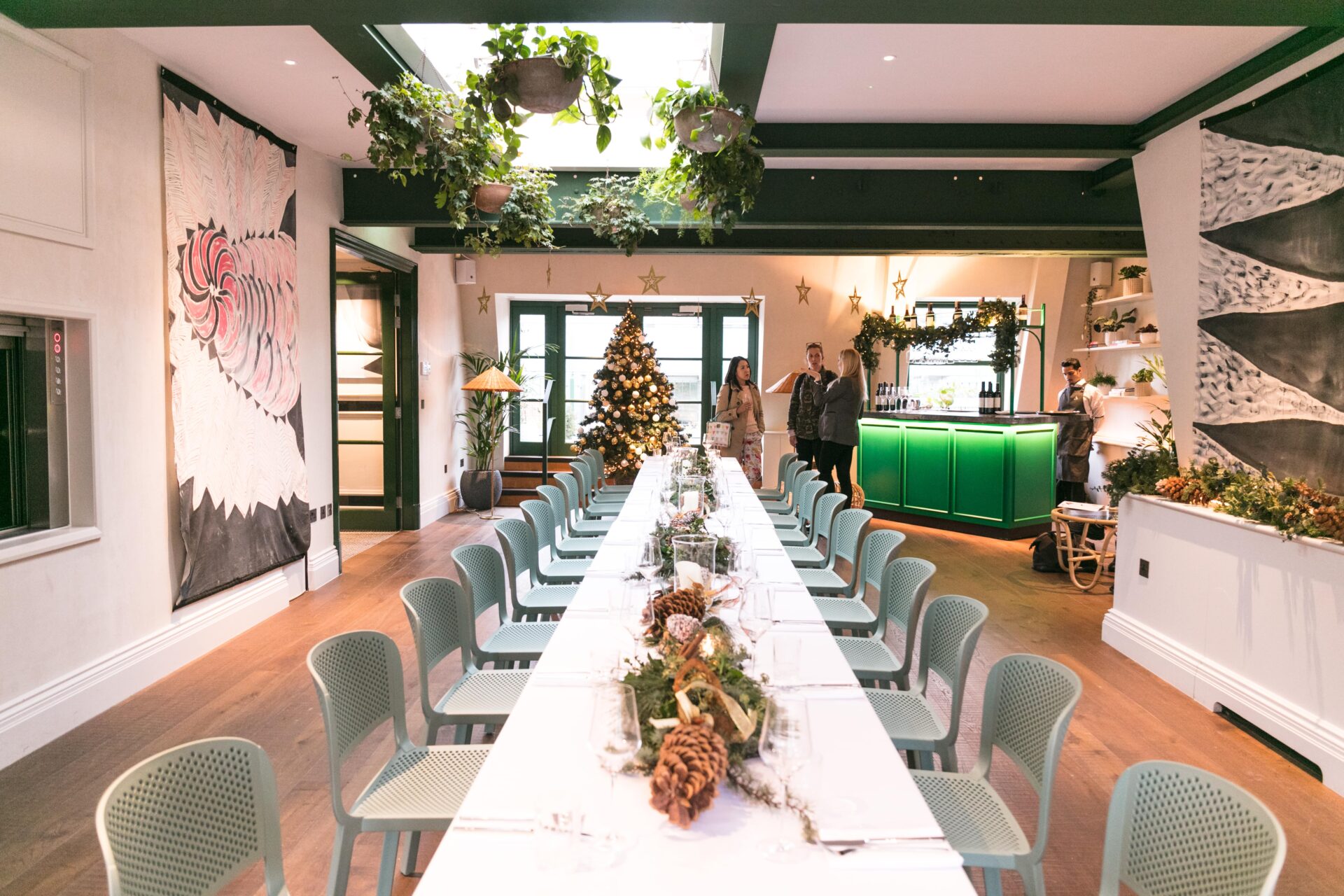 This appealing loft-style area boasts a bar, abundant natural light, lively hanging greenery, and two exclusive terraces. The fifth floor serves as a designated events area, ideal for dining, screenings, summer gatherings, Christmas celebrations, and networking events.