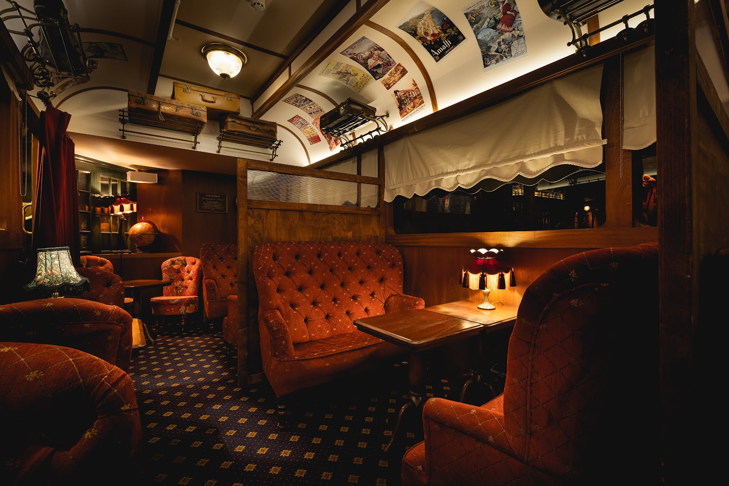 Society fellows and adventurers can indulge in exploratory libations in the dimly-lit Drawing Room, enjoy a drink or two in the life-size Victorian Train Carriage, or marvel at cabinets of curiosities in the mysterious Map Room.