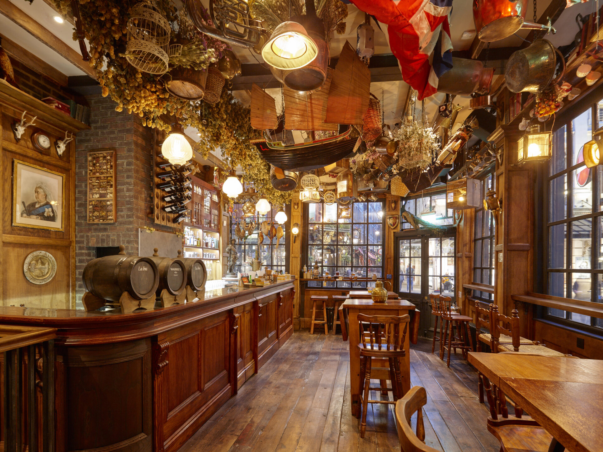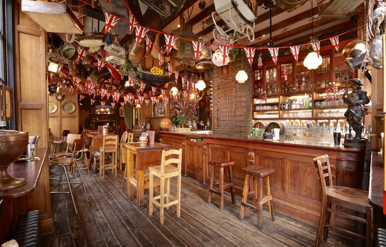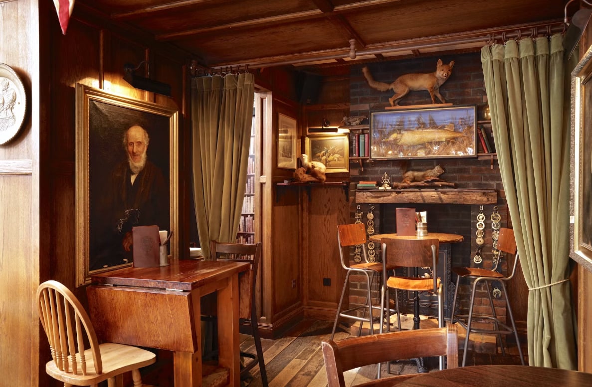 Situated at the intersection of New Row and St. Martin’s Lane, Mr. Fogg’s Tavern is nestled in the vibrant heart of theatre-land. Originally bequeathed by Fogg’s late Aunt Gertrude to her devoted housekeeper Fanny McGee, the residence has undergone a remarkable transformation into a welcoming retreat for art enthusiasts and theatre aficionados. Guests can immerse themselves in the surroundings adorned with an eclectic assortment of memorabilia, and now, they can savour delightful snacks and beverages in the spacious outdoor seating area.