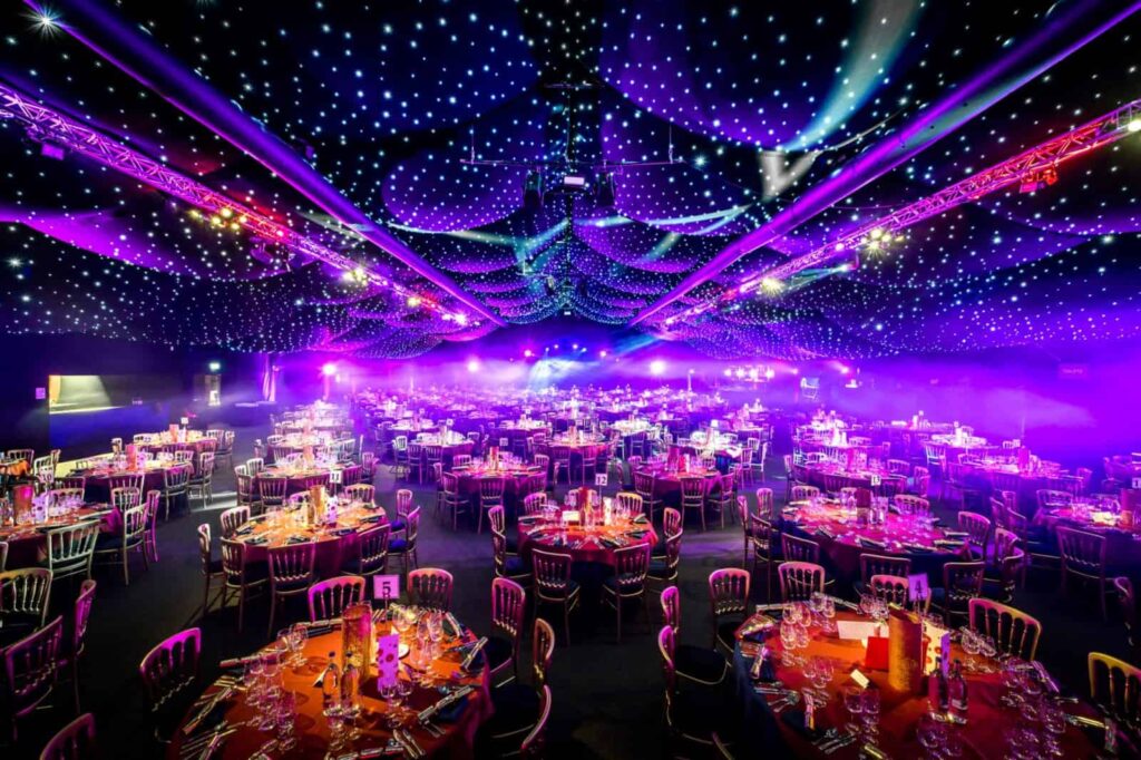 Following your reception, you will journey into the main event space and take your seats beneath our magnificent starlit ceiling, where a delicious three-course dinner by our award-winning caterers, Create awaits.